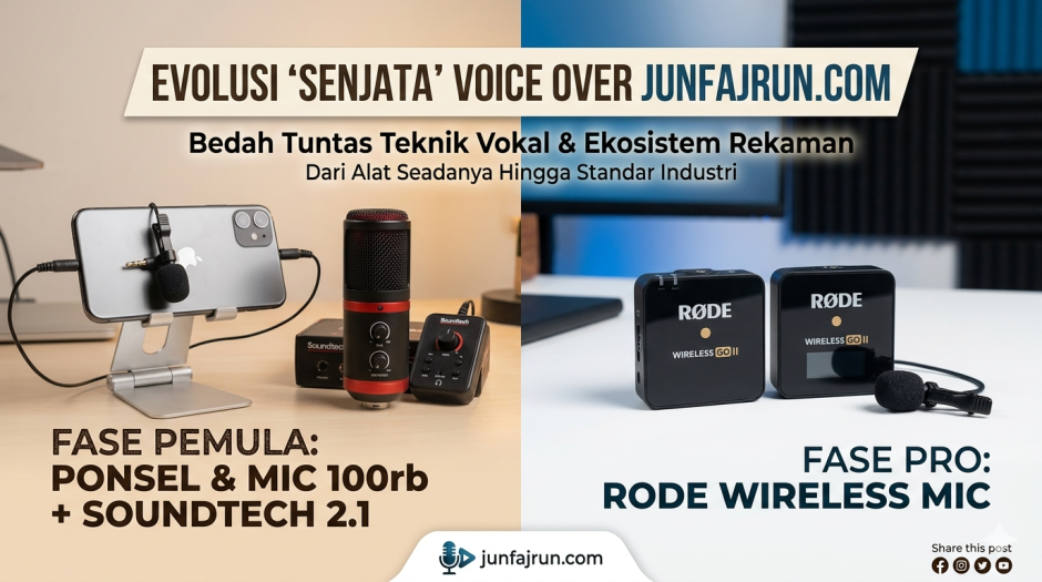 Sebagai praktisi yang memulai dari ponsel Android dengan mic 100 ribuan hingga kini menggunakan standar industri seperti Rode, saya ingin membedah tiga pilar utama dalam VO: Teknik Vokal, Analisis Naskah, dan Ekosistem Rekaman.